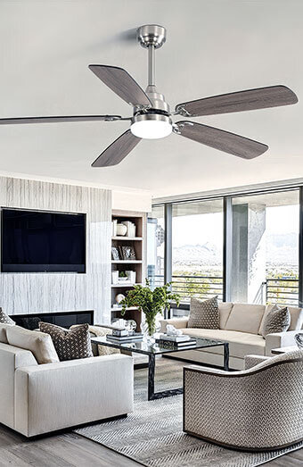 Installation or upgrade of ceiling fans with dedicated wall controllers for precise speed and direction management at the touch of a button throughout your home.